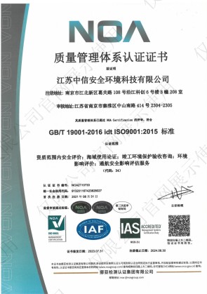 江蘇中信安全環(huán)境科技有限公司成立于2002年 是一家綜合性的海域使用、生態(tài)環(huán)境與安全生產(chǎn)專業(yè)技術(shù)服務(wù)機(jī)構(gòu),主要為海洋工程、港口碼頭、各類生產(chǎn)企業(yè)等提供海域使用、生態(tài)環(huán)境與安全生產(chǎn)整體解決方案。公司辦公面積2560平米,總部位于南京市中山南路414號投資大廈23樓,檢測中心位于南京市江寧區(qū)菲尼克斯70號1號樓。公司是中國安全生產(chǎn)協(xié)會(huì)安全評價(jià)專業(yè)委員會(huì)主任委員單位,省交通運(yùn)輸協(xié)會(huì)港航分會(huì)會(huì)員單位,省海洋經(jīng)濟(jì)協(xié)會(huì)會(huì)員單位,省社會(huì)穩(wěn)定風(fēng)險(xiǎn)評估促進(jìn)會(huì)會(huì)員單位,2012被省經(jīng)信委評為“江蘇省星級公共服務(wù)平臺(tái)”單位,2018年起連續(xù)為國家高新技術(shù)企業(yè)。