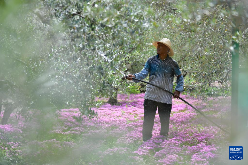 5月17日,在隴南市武都區(qū)漢王鎮(zhèn)的祥宇國家級萬畝有機(jī)油橄欖種植示范基地,果農(nóng)觀察油橄欖開花情況。