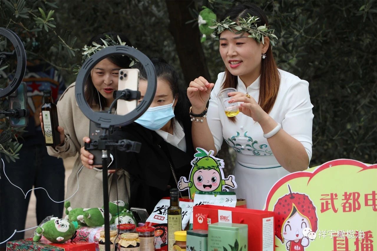 在祥宇生態(tài)產(chǎn)業(yè)園與賀家坪油橄欖基地的直播現(xiàn)場(chǎng),主播們圍繞橄欖油、橄欖菜,用現(xiàn)場(chǎng)展示、品鑒體驗(yàn)等方式向外界推介宣傳,直播間氣氛異?;钴S。