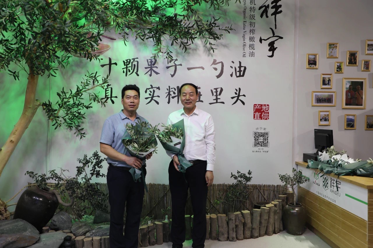 在產品體驗區(qū)王總向陳書記一行介紹了祥宇特級初榨橄欖油、橄欖茶、橄欖菜、橄欖保健品等系列產品,