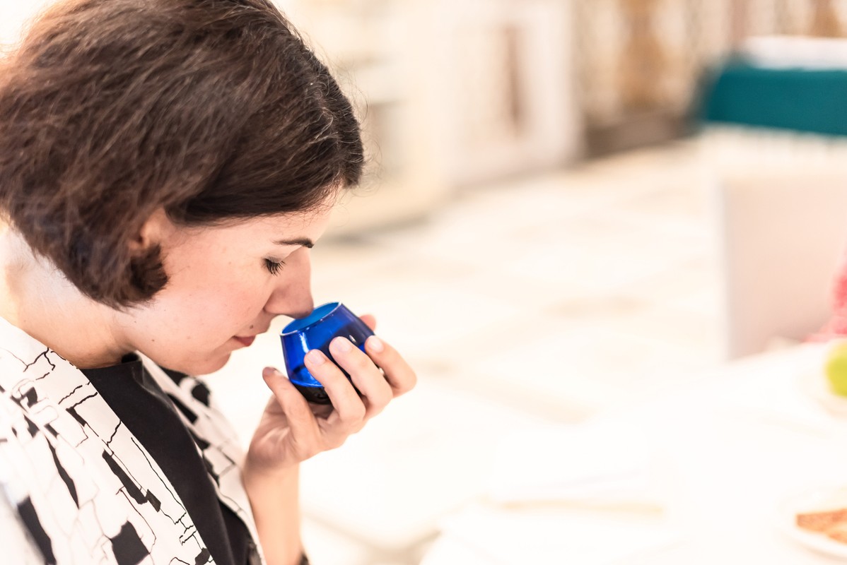 評委們使用橄欖油,感官評價專用藍(lán)色品鑒杯,在同一時間、
