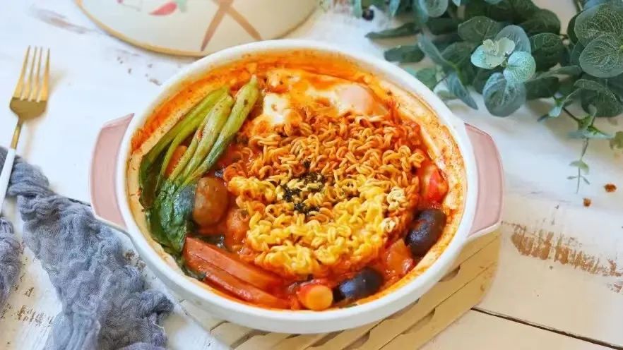再放拉面和綠菜(午餐肉、雞蛋)進(jìn)去煮