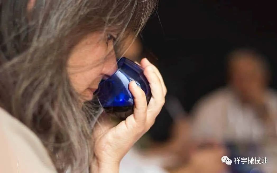 采用藍色郁金香型橄欖油品鑒專用杯。